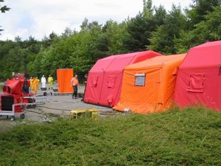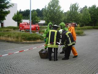 Übung wurde in 3 Abschnitte gegliedert: Nach 4,5 Stunden war die Übung dann beendet. Sie lief für alle Beteiligten zur vollsten Zufriedenheit ab. Wir haben 20 CSA-Trupps und eine Gruppe von 4 Jugendlichen dekontaminiert und auf Kontamination nachkontrolliert. Um 20.30 Uhr wurden wir dann auf Einladung der Feuerwehr Bad Hersfeld zum Feuerwehrfest gefahren, wo für uns im Festzelt Bänke und Tische reserviert waren. Am Sonntagmorgen hieß es nach dem Frühstück Abschied nehmen und wir fuhren um 10.00 Uhr wieder Richtung Heimat wo wir um 15.00 Uhr zufrieden aber geschafft nach Hause kamen. P. S. Alle Beteiligten waren mit dem Wochenende sehr zufrieden und im Jahr 2006 werden wir wahrscheinlich die Übung hier im Kreis Aachen mit den Kameraden/innen aus Bad Hersfeld ausrichten. Ich möchte mich nochmals bei allen beteiligten Kameraden bedanken und wünsche uns für die Zukunft alles Gute.