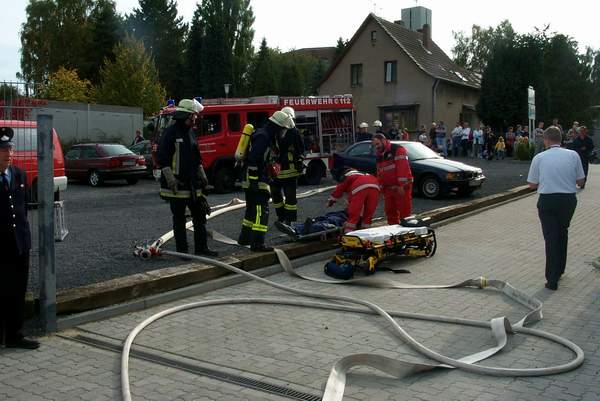 Löschzuges an einer Schreinerei